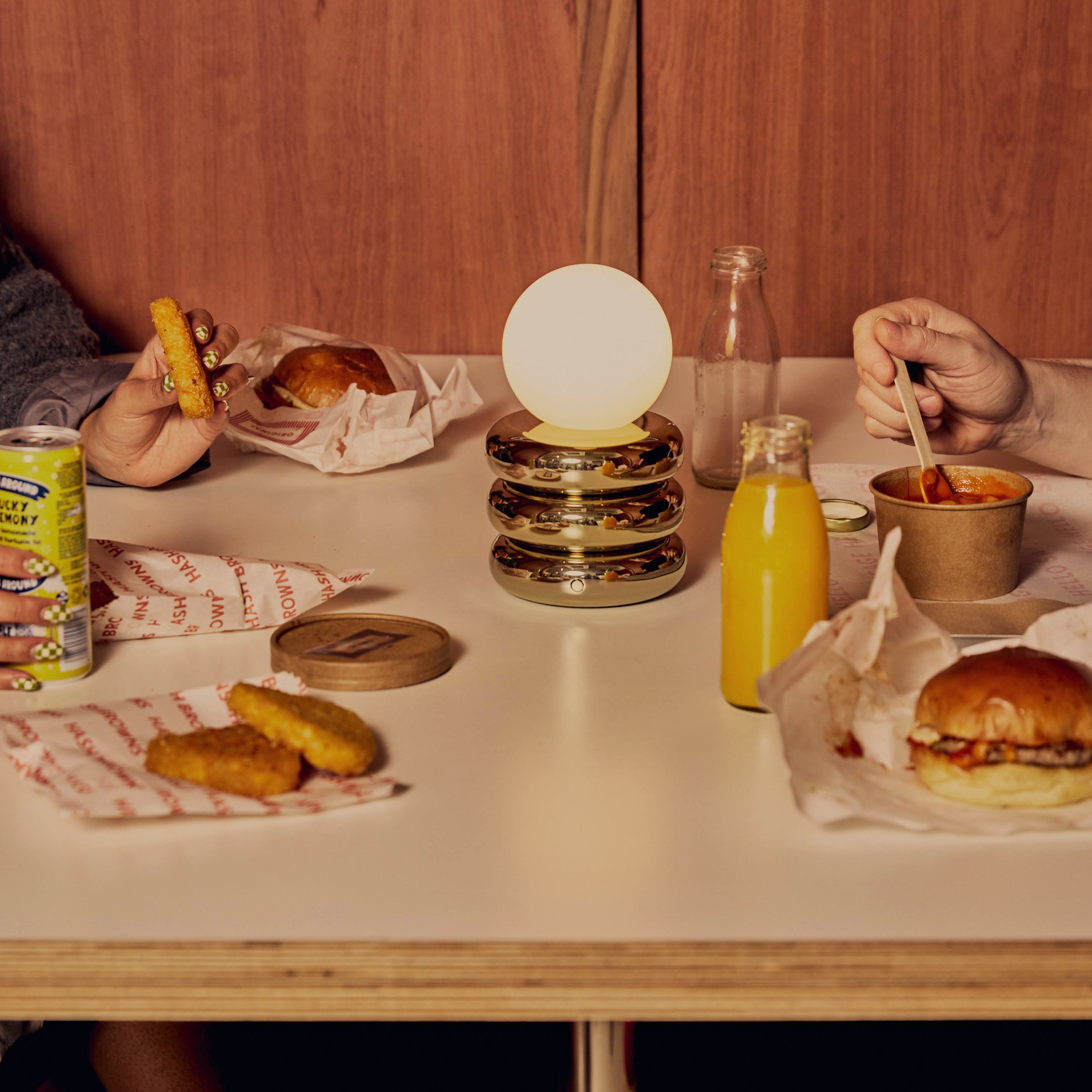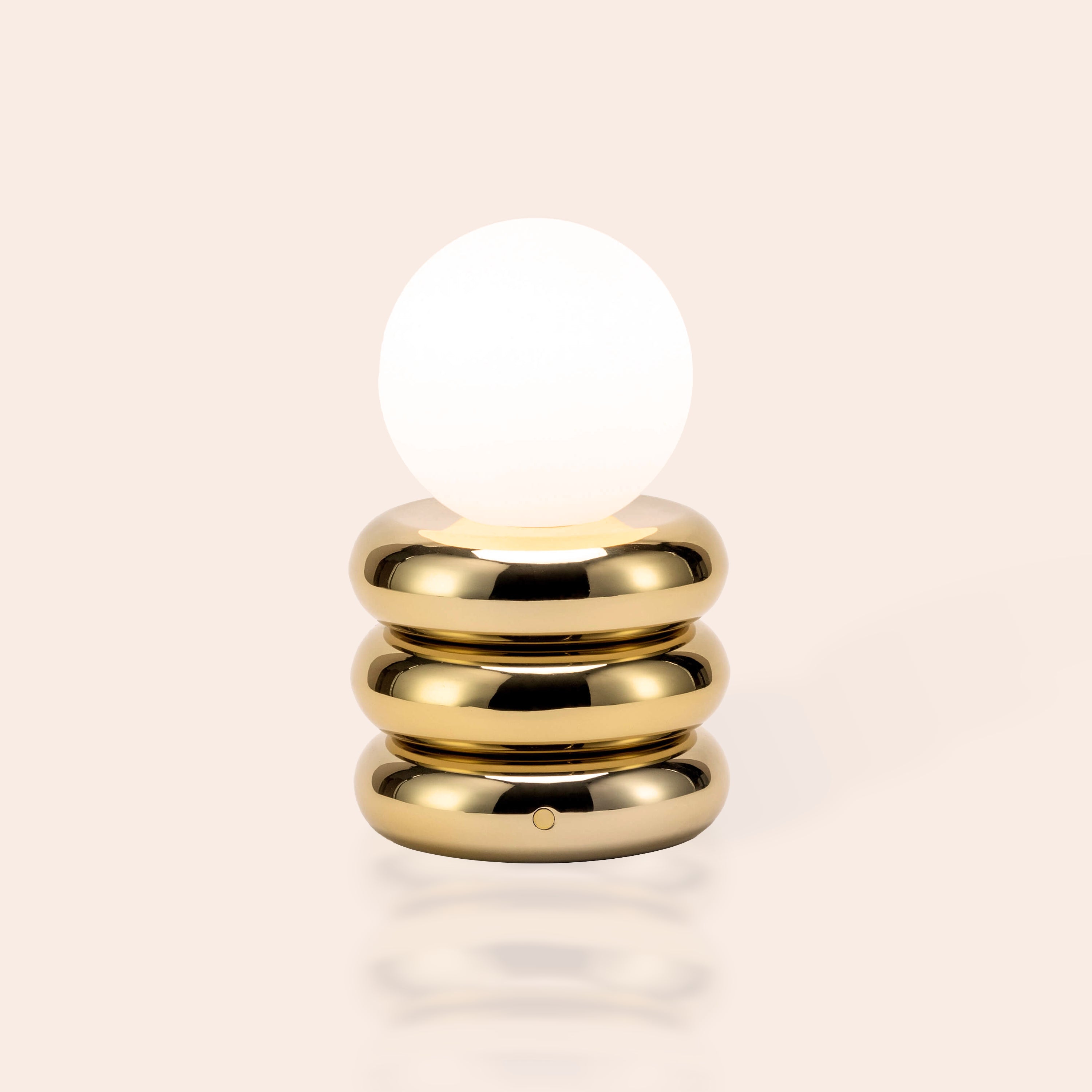 With up to 7 hours runtime, three-step dimming, and no visible cords, it perfectly suits bedside styling, dining vignette mood lighting, or shelves where intention matters. The high-polish brass contrasts beautifully with opal glass, striking a balance between luxe and laid-back. Sustainable by design—climate-offset production, recyclable packaging, and backed by B‑Corp values.