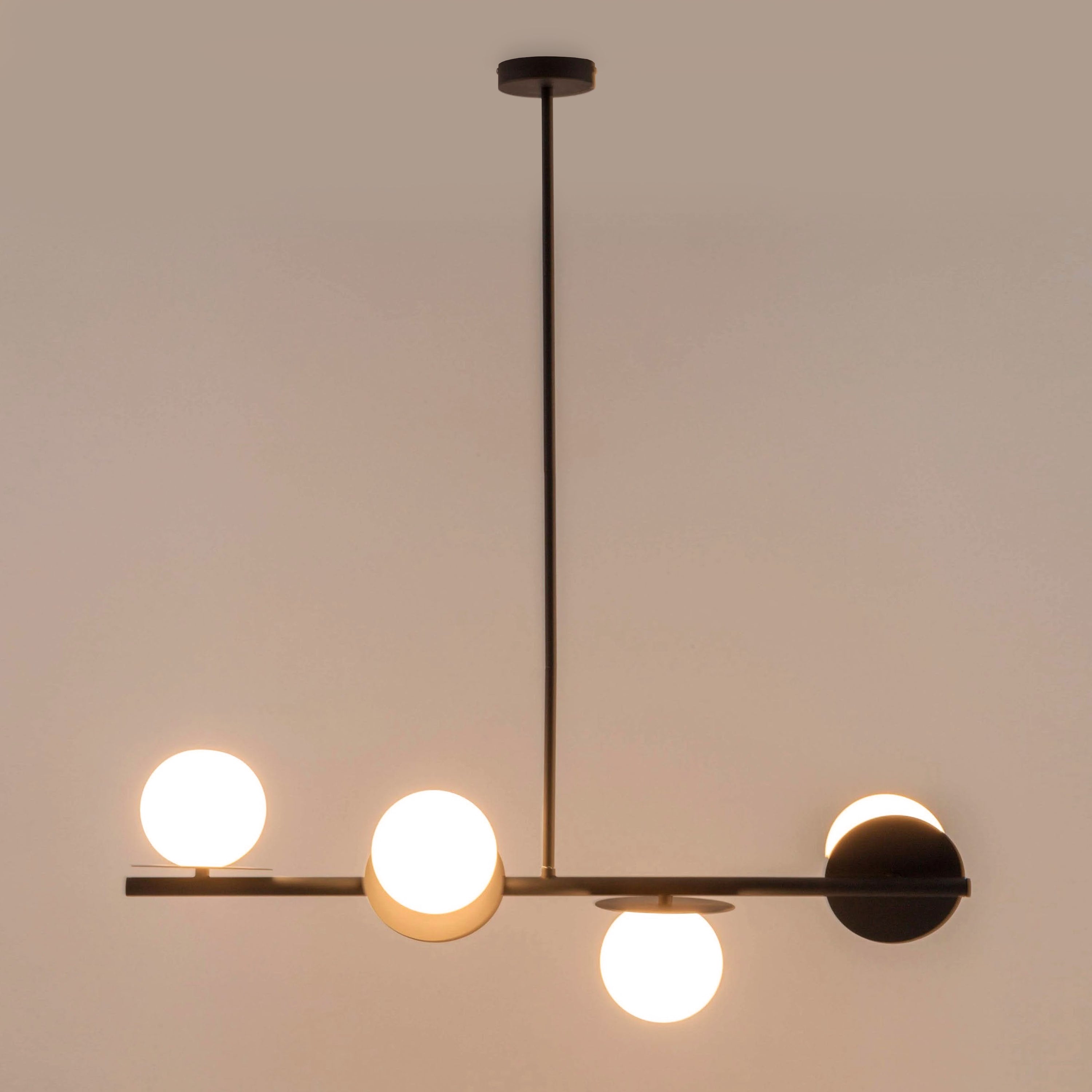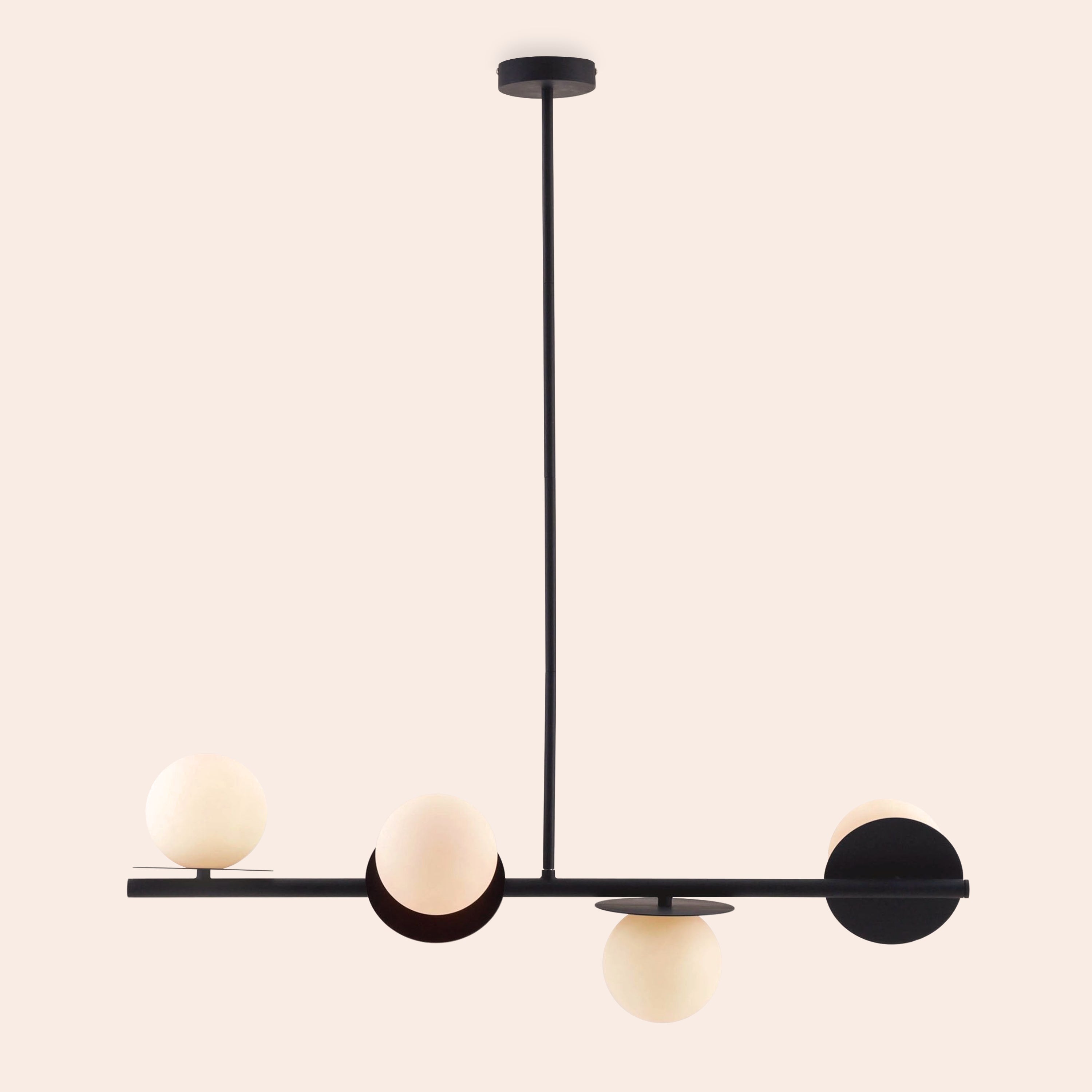 The Charcoal Grey Opal Disk Ceiling Light delivers thoughtful drama to your ceiling plane—an architectural showpiece that doubles as ambient lighting. It features four opal glass discs suspended from a matte charcoal-grey stem, each disk angled to sculpt light across the room in subtle, reflective layers. The rich, understated tone evokes a night sky aesthetic, while the smoked finish brings a curated edge to modern interiors.