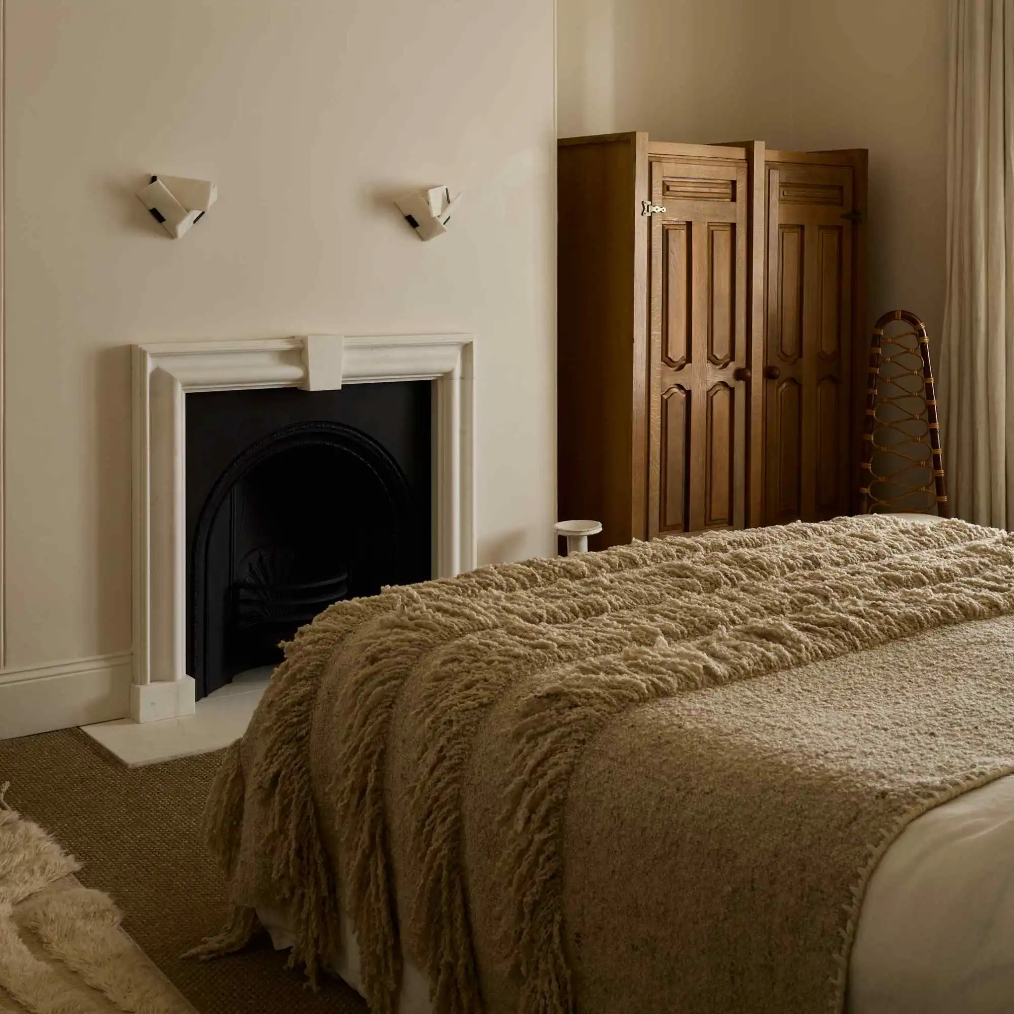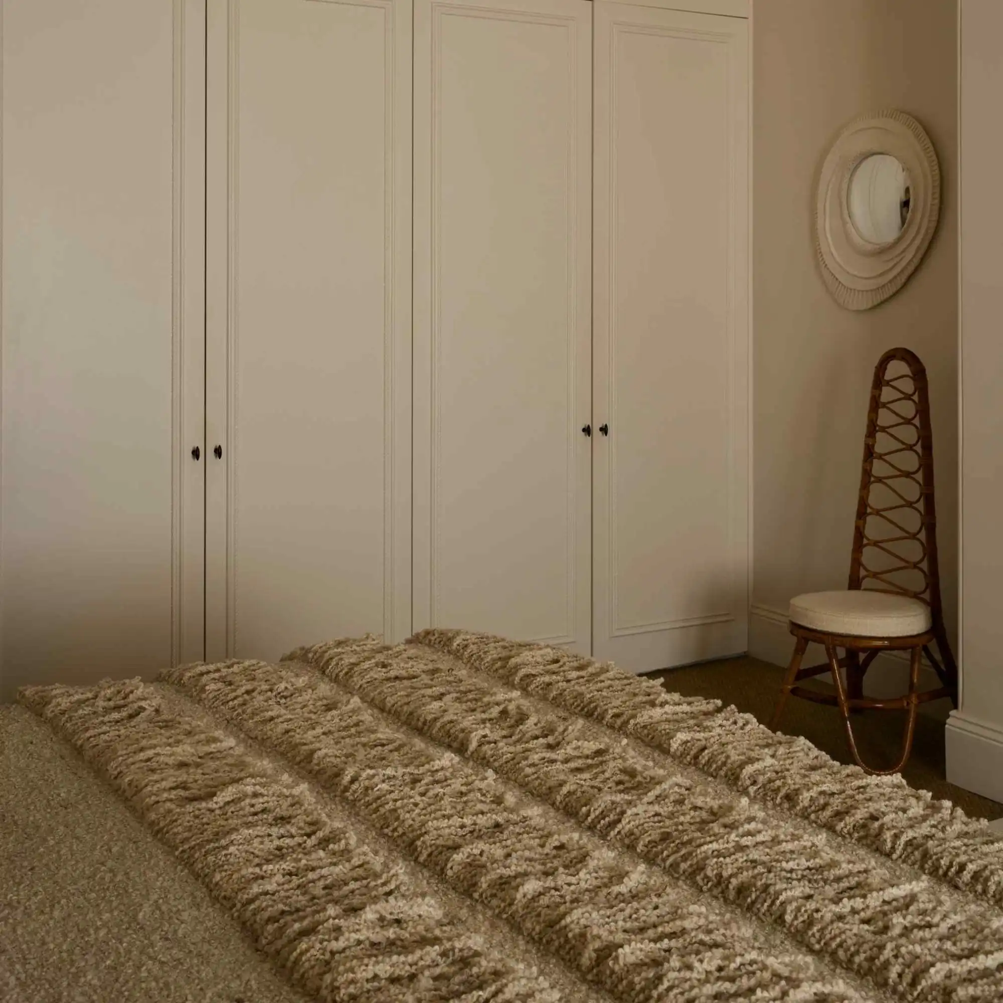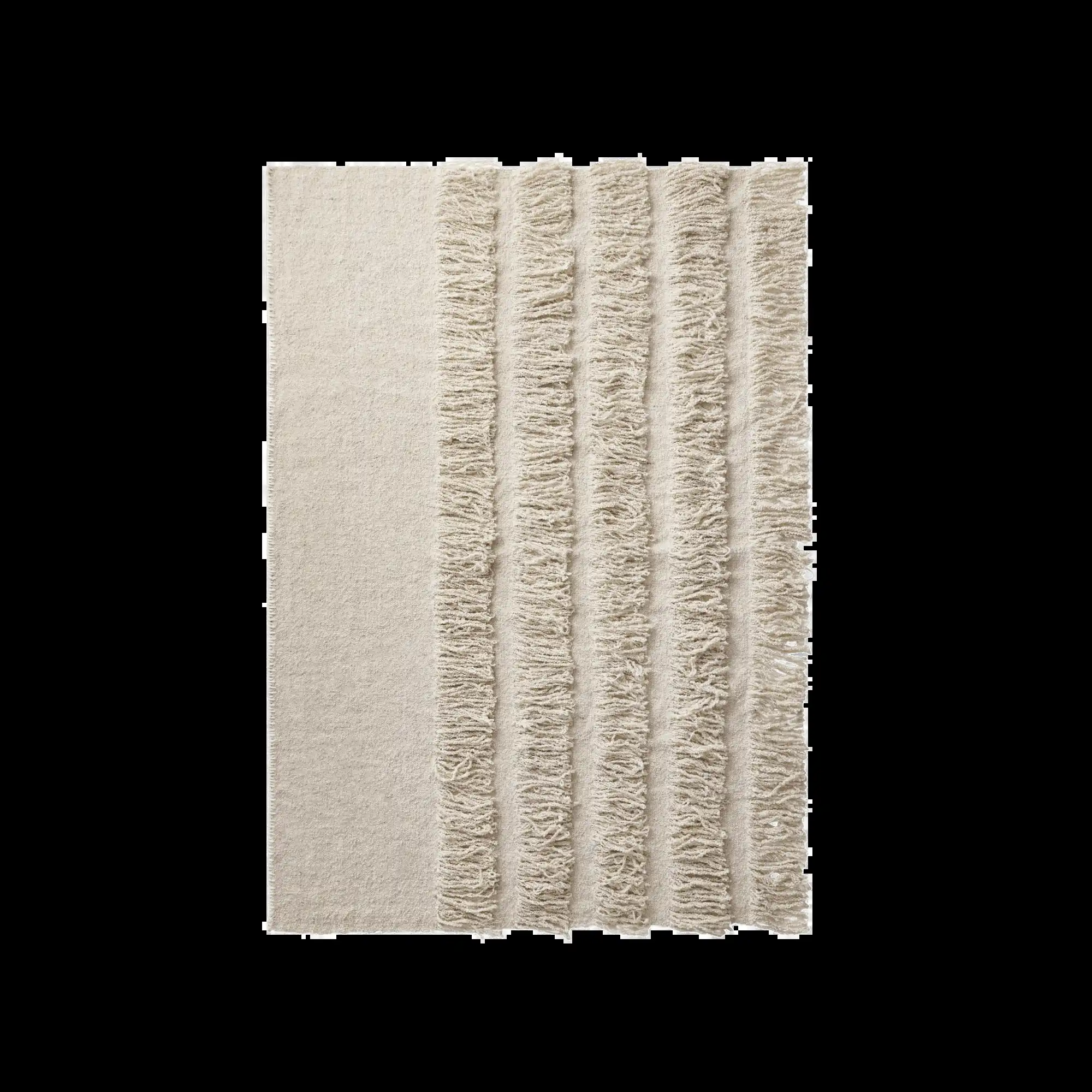 Coverlet No. 02 blends lavish texture with elevated artistry. Crafted from 100% premium New Zealand wool, it features layered flat-weave construction that creates eye-catching dimension and luxurious drape. The rich fringe and meticulously hand-stitched edge detail offer tactile elegance while infusing the piece with refined craftsmanship.