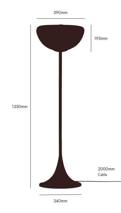 Shade diameter: 39 cm / 15.4″; shade height ~20 cm / 7.9″