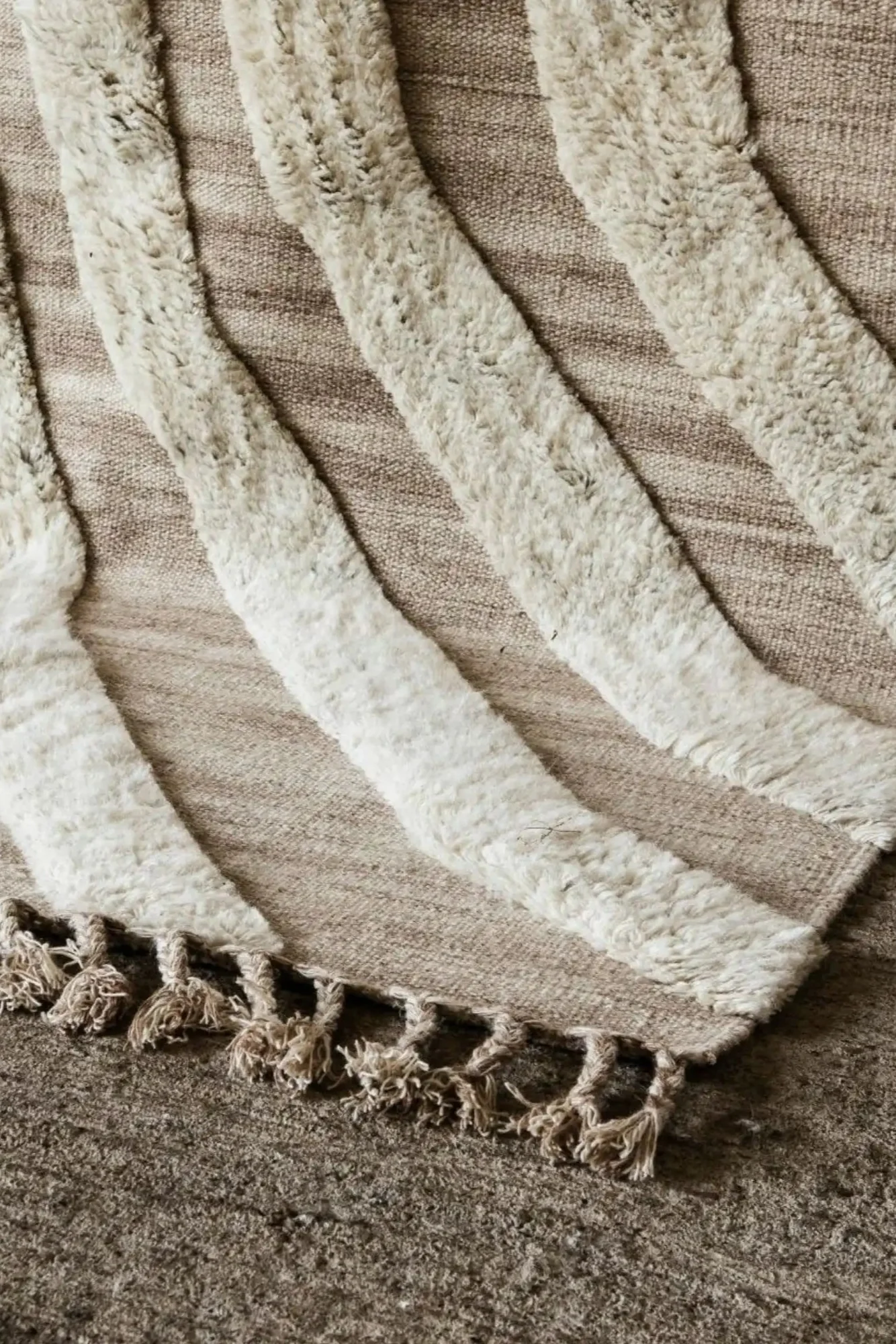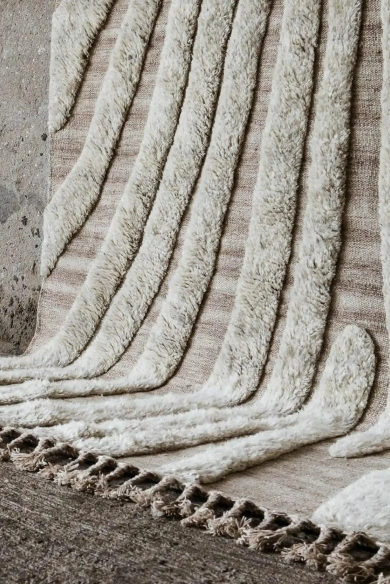 Ideal for layering beneath a coffee table, framing a reading nook, or accentuating a minimalist space, this rug brings cozy warmth and understated artistry to modern and classic interiors alike. Its tactile richness and handcrafted charm give any room a soft, serene focal point.