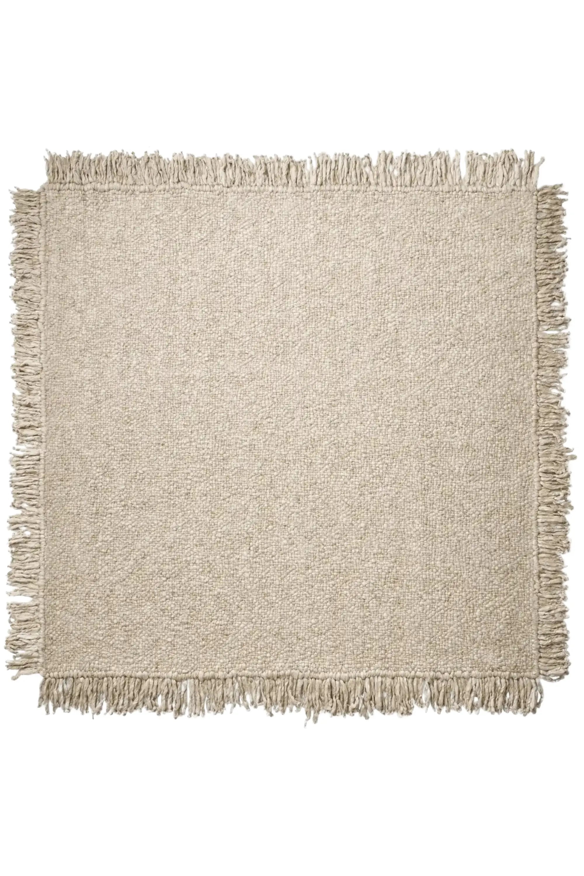 With fringed edges that enhance its relaxed, artisanal appeal, this rug makes an elegant anchor piece in living rooms, entryways, or layered under dining furniture. Its harmonious interplay of texture and simplicity creates a warm, organic statement that feels timeless and refined.