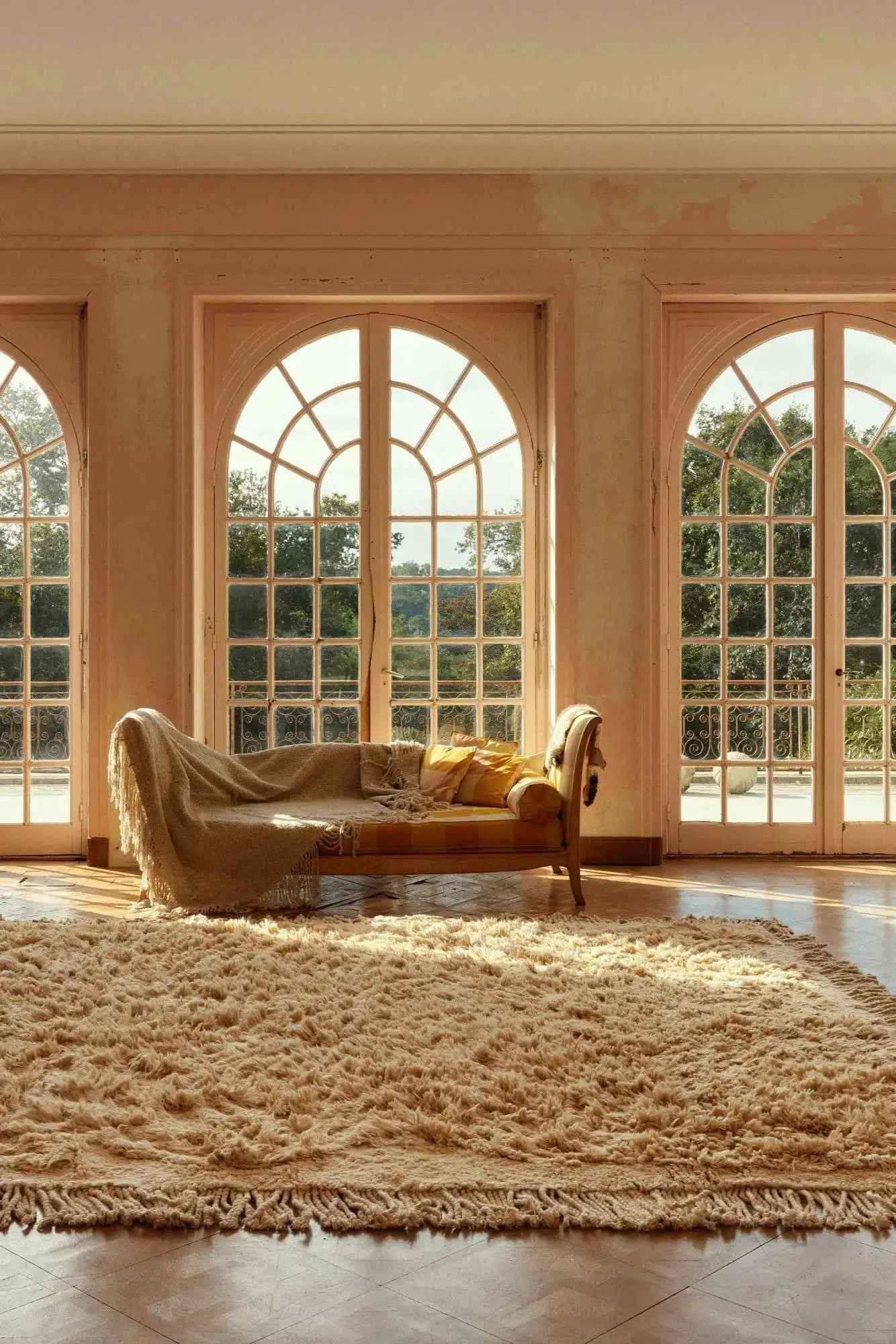 Each rug showcases unique pattern variations and tonal shifts, celebrating the individuality of artisanal creation. Whether layered in a cozy lounge, framed under a seating grouping, or featured as a centerpiece in an entryway, it brings warmth, texture, and elevated craftsmanship to both modern and classic styling.