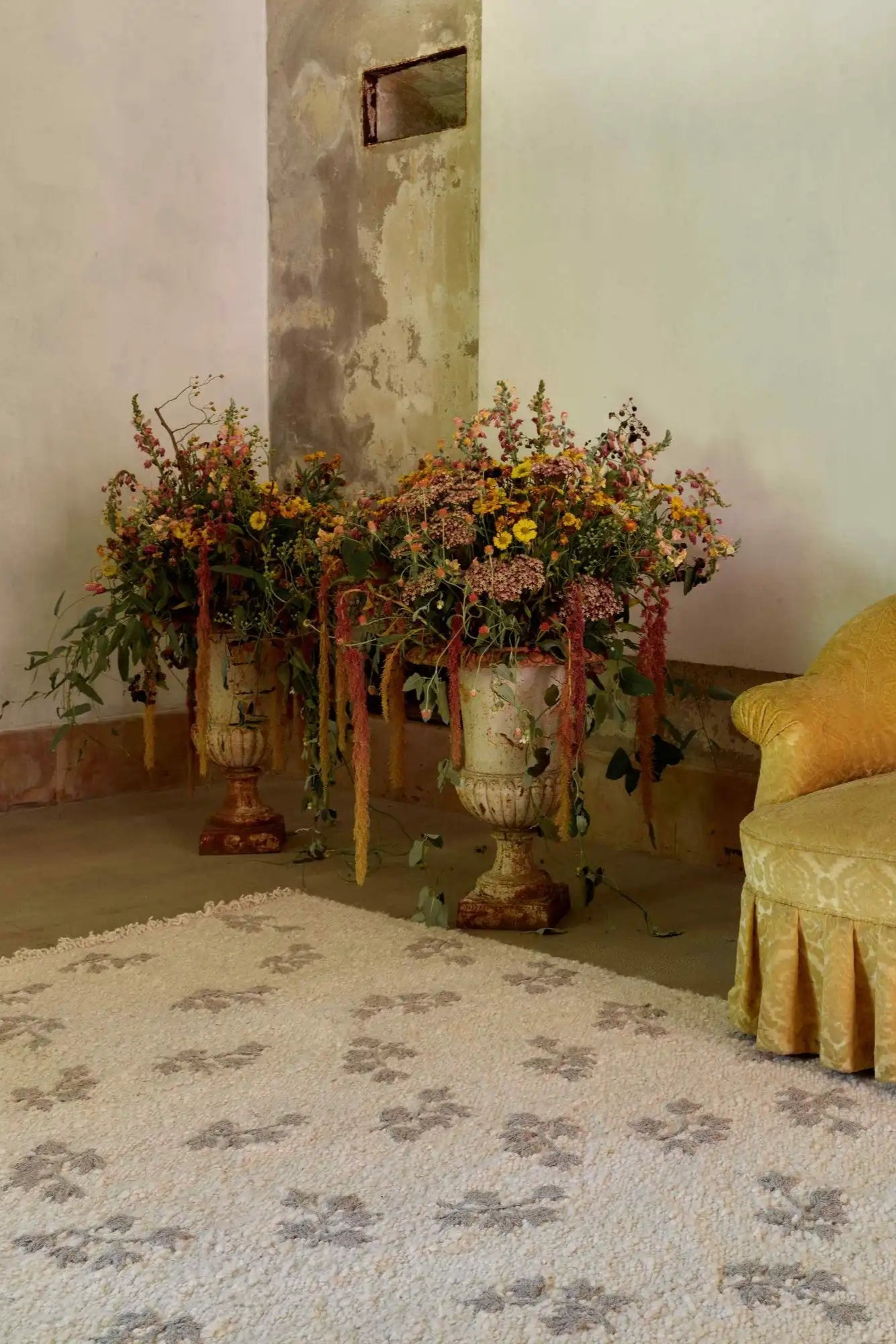 Rug No. 16 merges poetic artistry with tactile luxury, hand-knotted from a blend of natural wool and cotton and enriched with hand-embroidered floral motifs inspired by classic French lilies. Its chalky off-white base exudes understated sophistication, while each embroidered bloom brings uniqueness and refined visual intrigue to the surface.