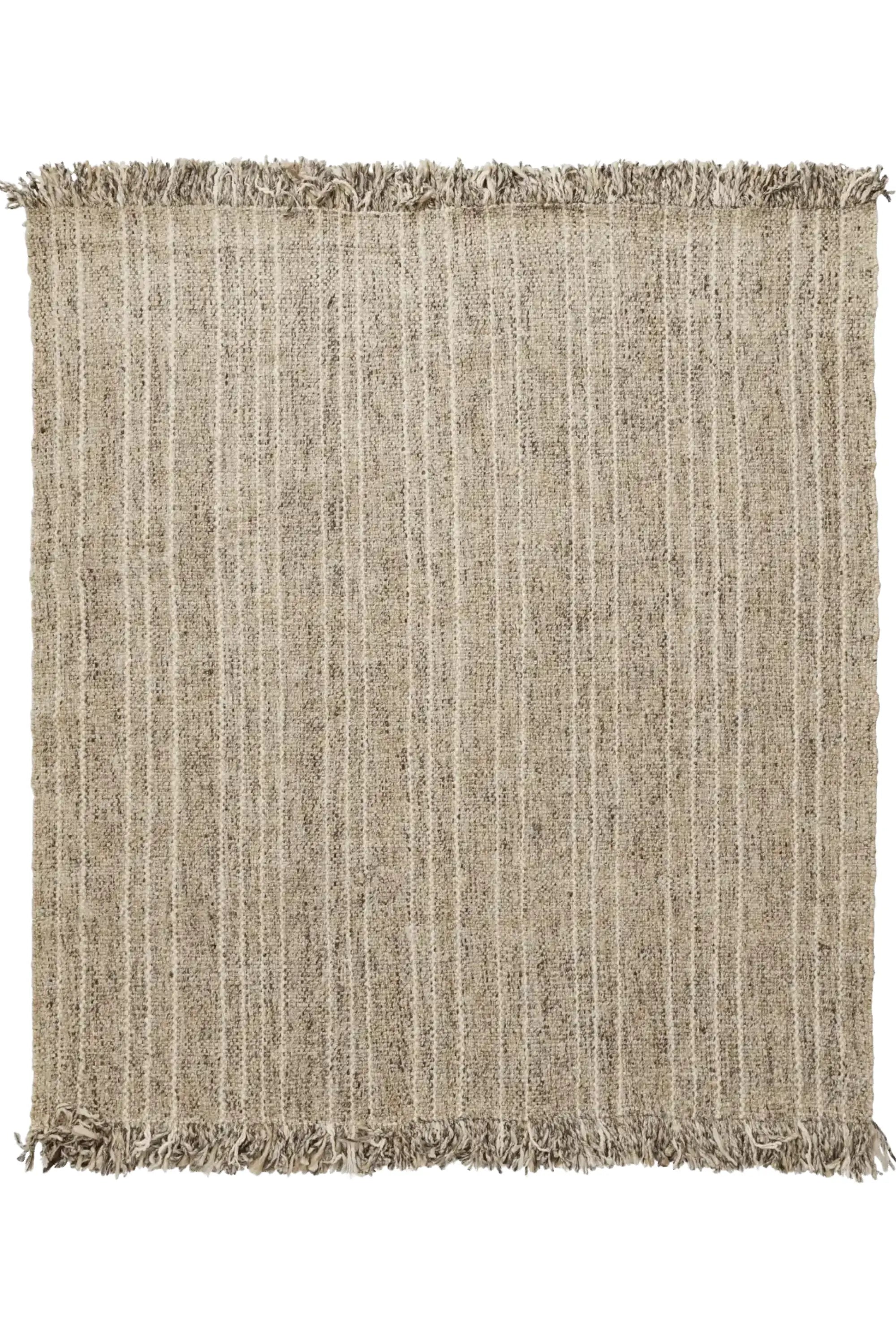 Handwoven long-pile construction with gentle stripe pattern