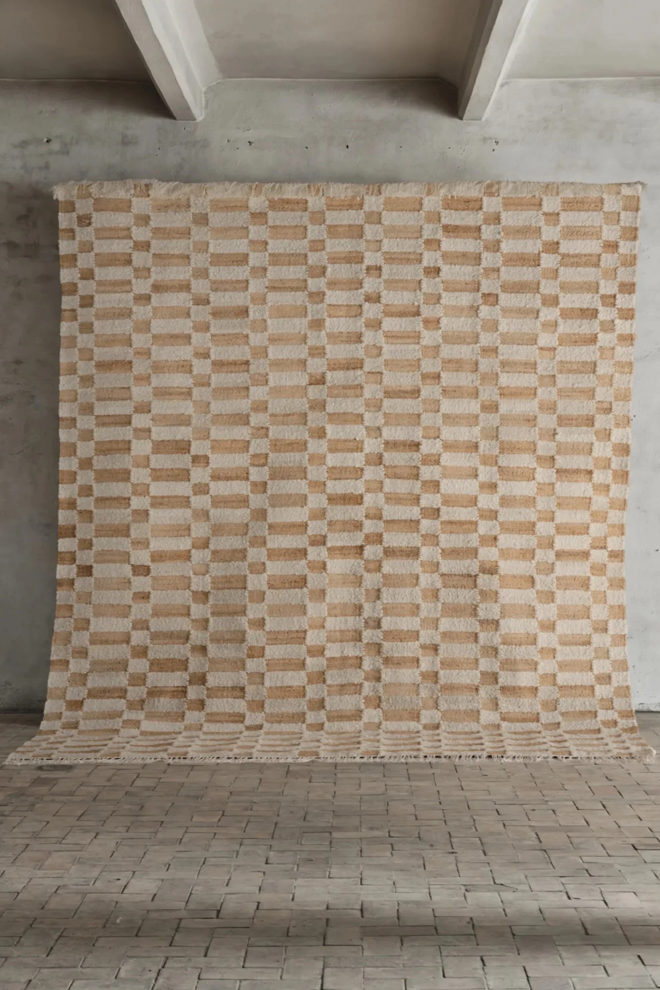 Rug No. 23 effortlessly unites a refined check motif with artisanal tradition. Handwoven using a sturdy jute base mingled with textured slub wool yarn, this flatweave piece offers a durable yet soft foundation that feels grounded and inviting. The nuanced check pattern introduces subtle depth and visual interest, making it an ideal centerpiece in any thoughtfully curated setting.