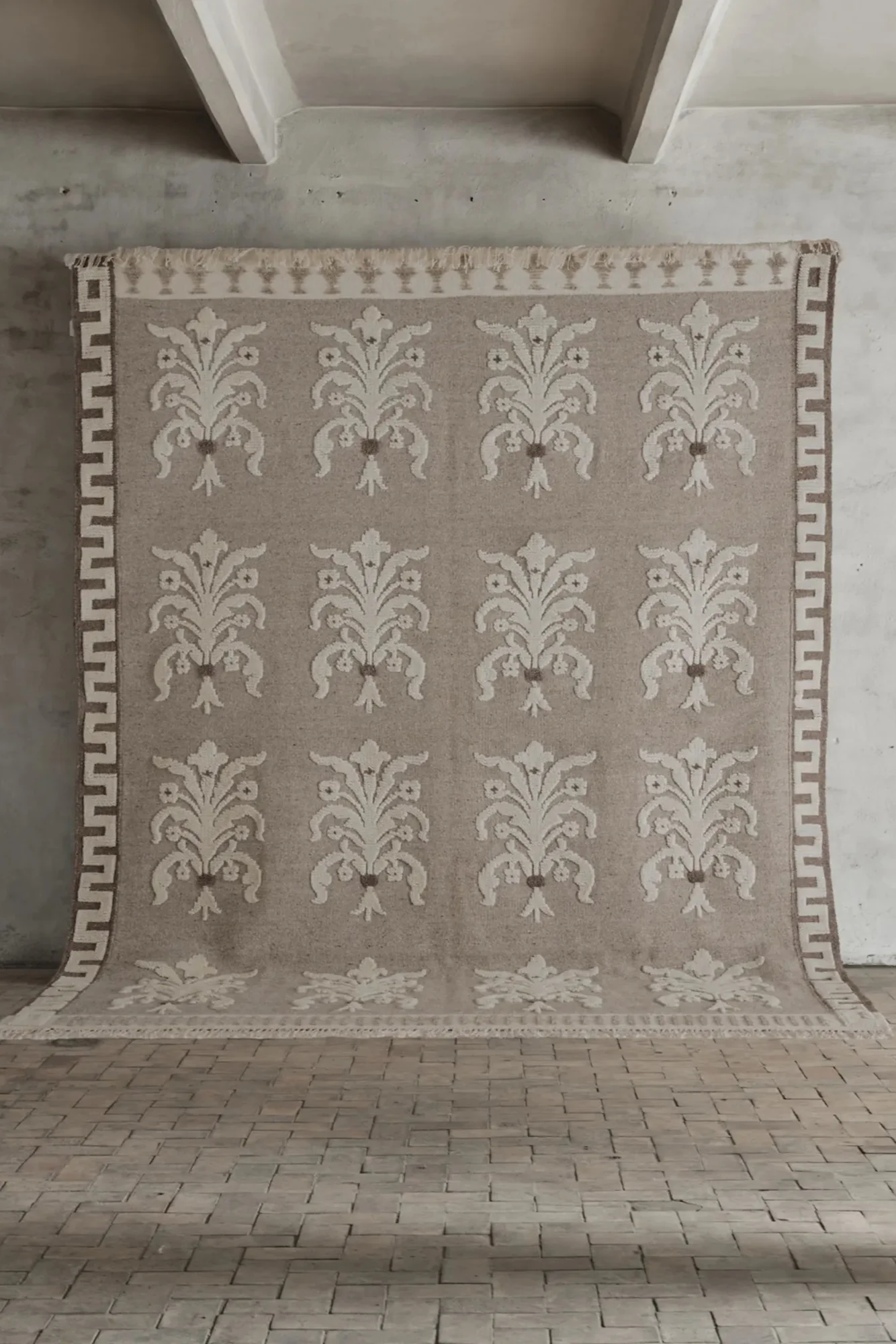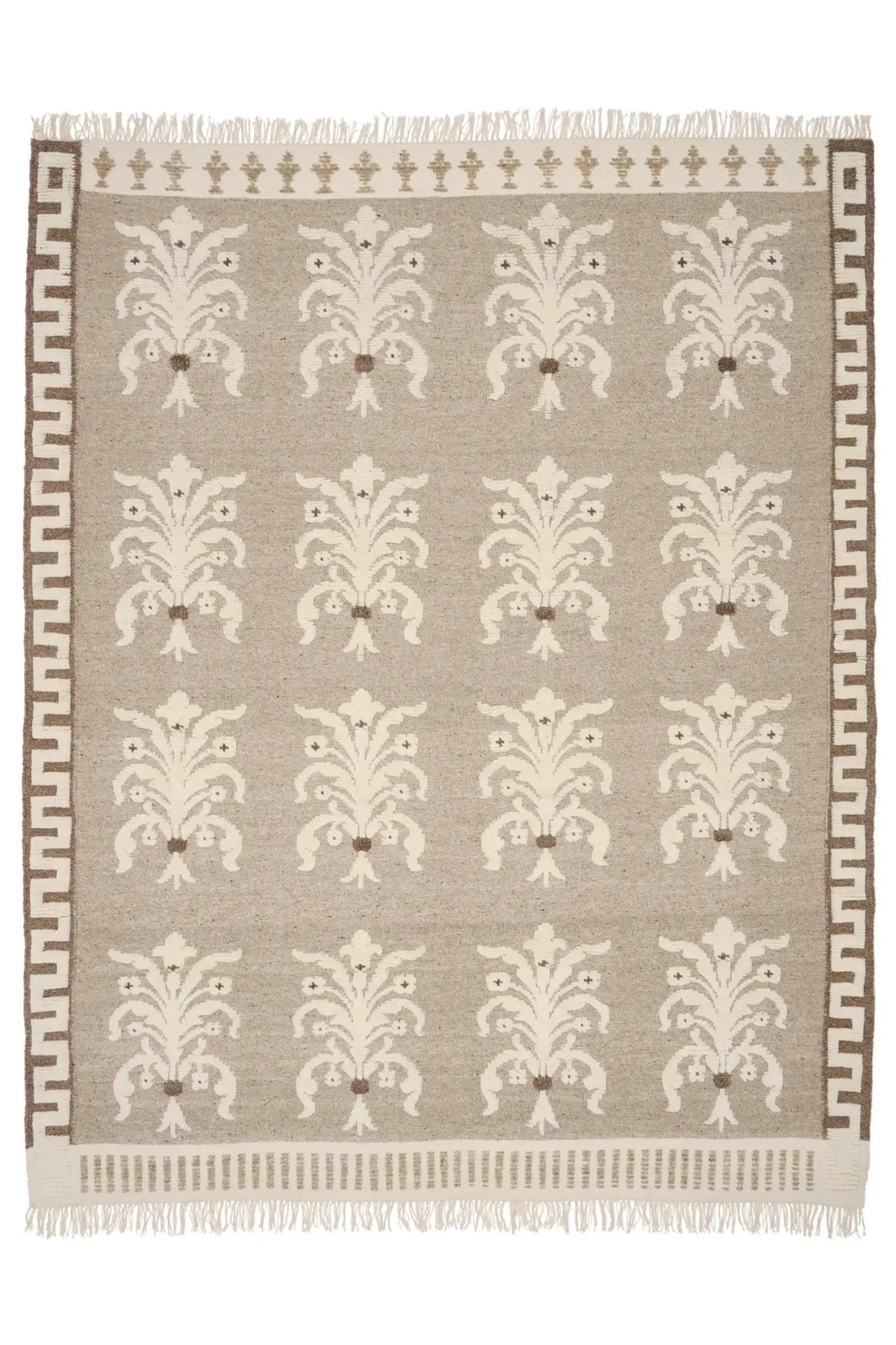 Rug No. 25 marries architectural inspiration with artisanal skill. Inspired by floral motifs often seen gracing the historic entrances of Copenhagen’s Frederiksberg district, its intricate pattern is hand‑knotted across a flat foundation—creating a subtle, high‑low texture that’s both refined and tactile THAT COOL LIVING. The cool, light-grey palette lends a modern and elegant feel while remaining grounded in time‑honored craftsmanship.