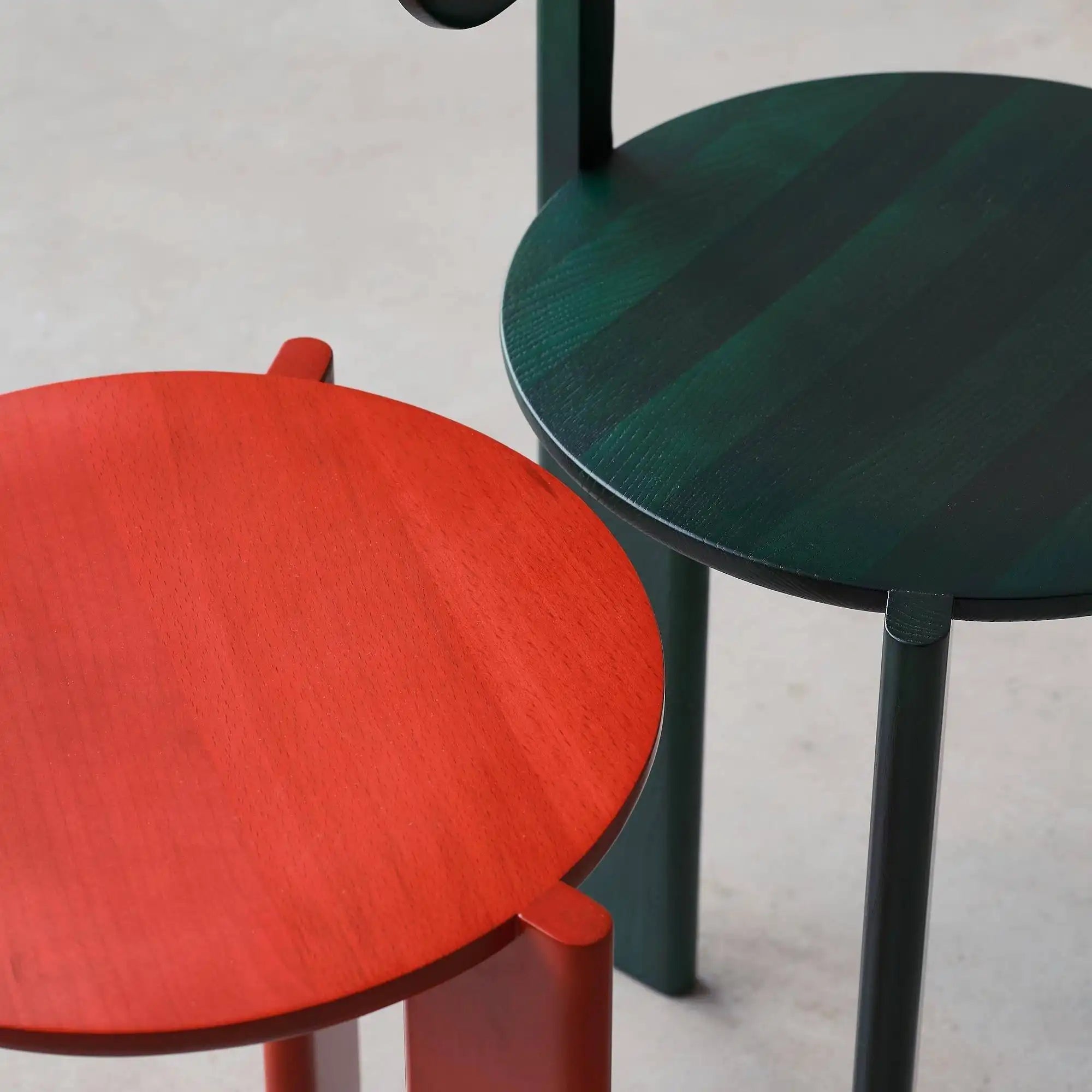 Crafted entirely from solid ash and lacquered in a choice of finishes including white, red, green, black, or natural ash, the Taptap Stool adds tactile warmth and everyday flexibility to living rooms, bedrooms, or lounge zones. Its playful simplicity and durable build make it ideal for curated interiors and multipurpose spaces.